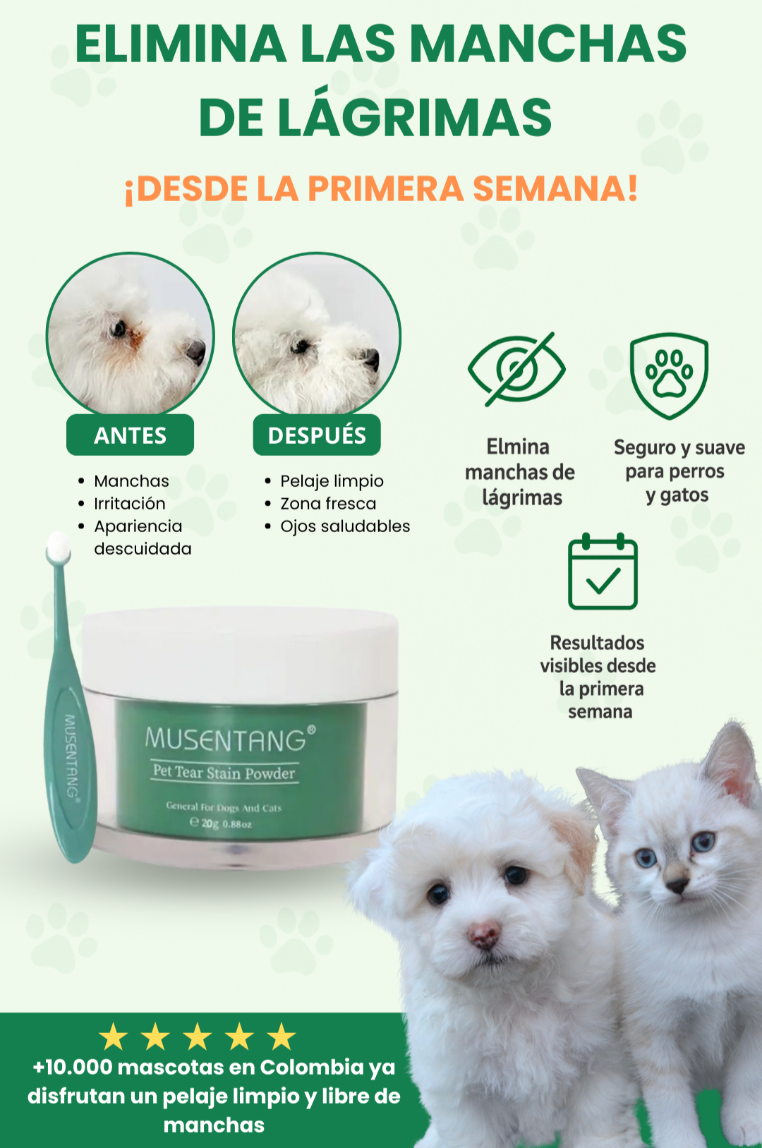 MUSENTANG® – Polvo Quitamanchas de Lágrimas para Mascotas