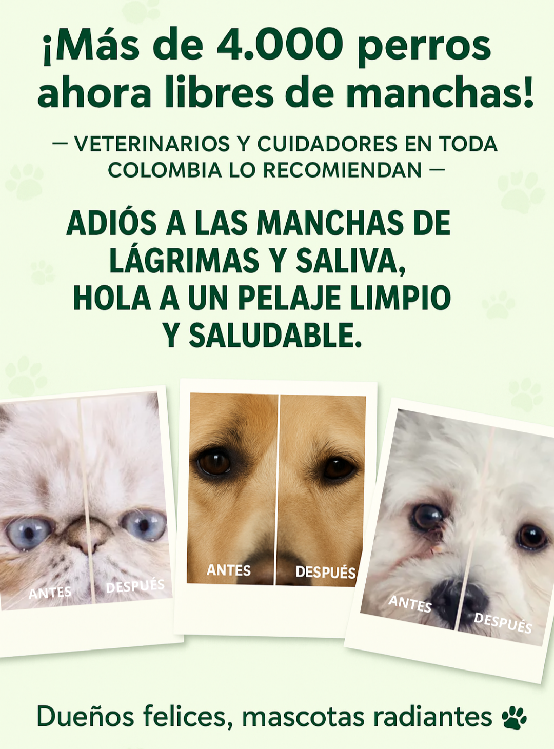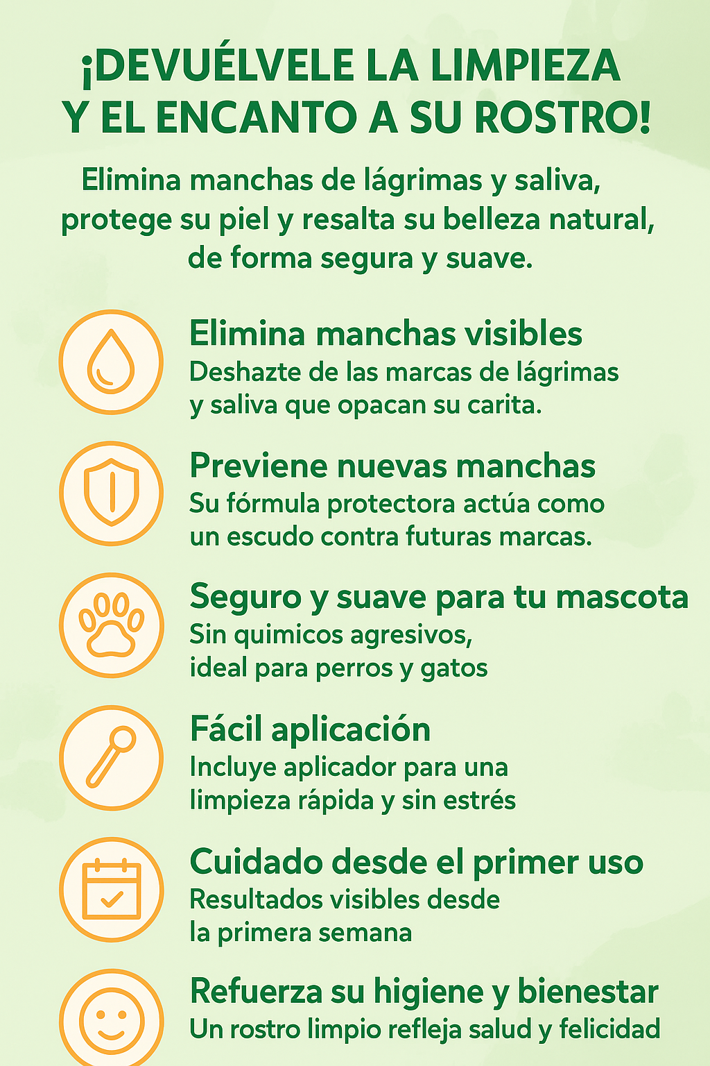 ✨ Elimina manchas visibles de lágrimas y saliva.