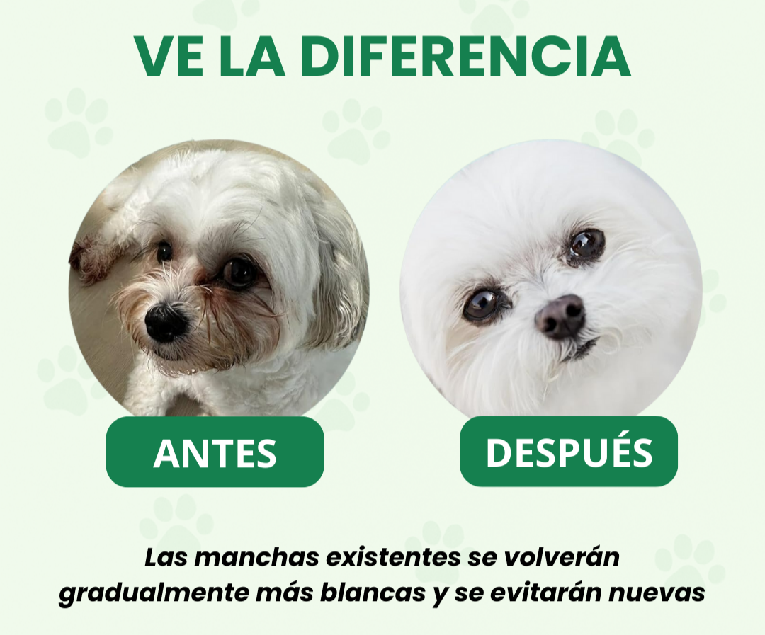 • Excelente producto, he probado otros y nada me dio resultados como este. Mi schnauzer ya no tiene las manchas feas en la barba. ¡Vale cada peso!